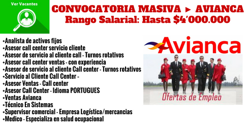 CONVOCATORIA MASIVA ► AVIANCA Rango Salarial: Hasta $4’000.000