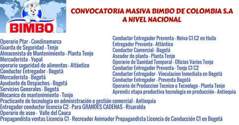 CONVOCATORIA MASIVA BIMBO DE COLOMBIA S.A